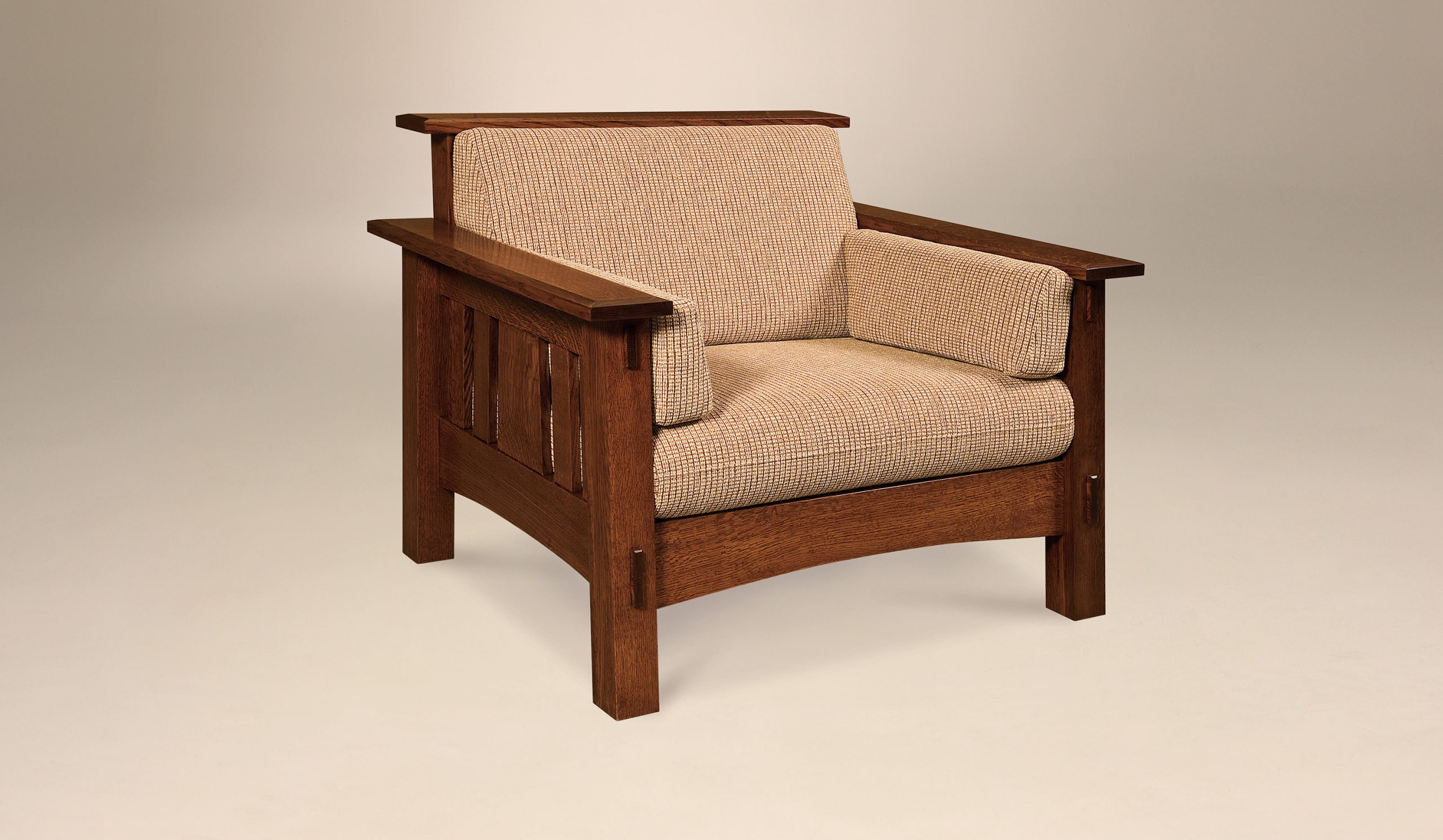 Complete your living space with this flawless chair. Change the wood species, stain color, and fabric to make it your own.
