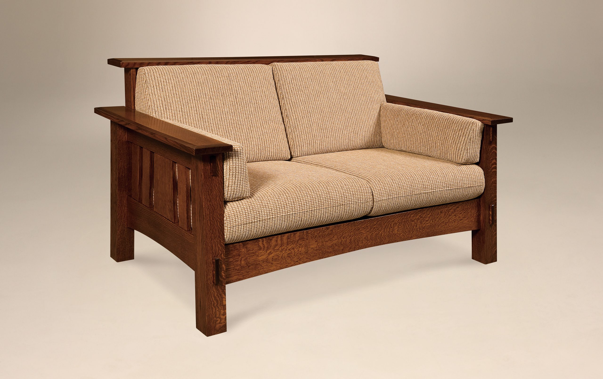 Look no further, this loveseat is what you’ve been looking for. With the fabric, wood species, and stain color customizable, this loveseat can be altered to meet both your needs and wants.