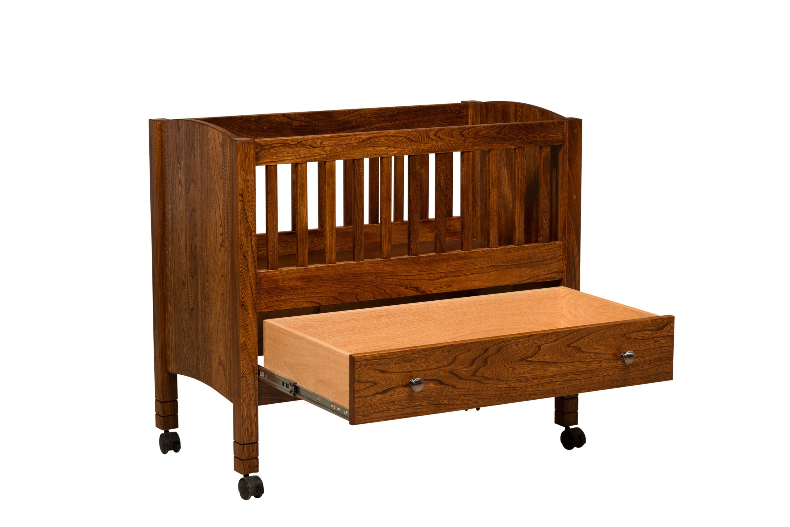The bassinet features a drawer for keeping the things you need close. It measures 39″w x 35″h x 21″d and includes a mattress which is 18″ x 36″ x 2″