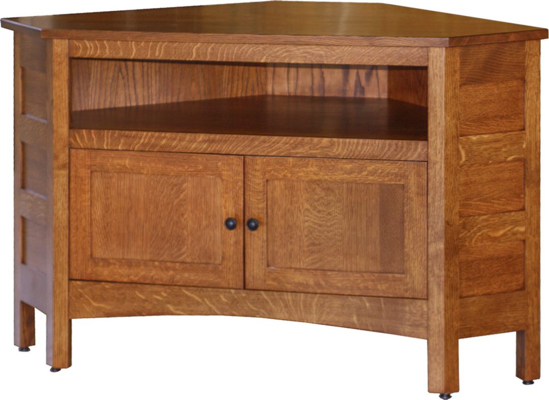 Need to position the TV in the corner of the room? Nothing says style more than this mission-style corner console. With the wood species, stain color, and hardware customizable, this tv stand can be altered to both meet your needs and wants.