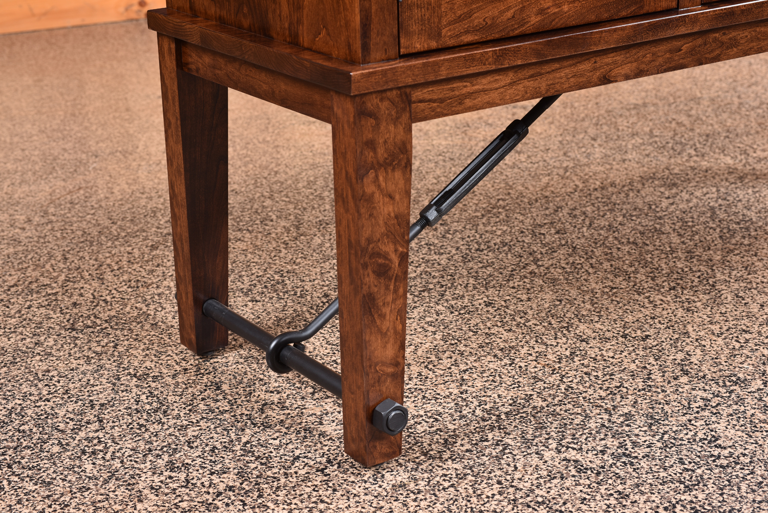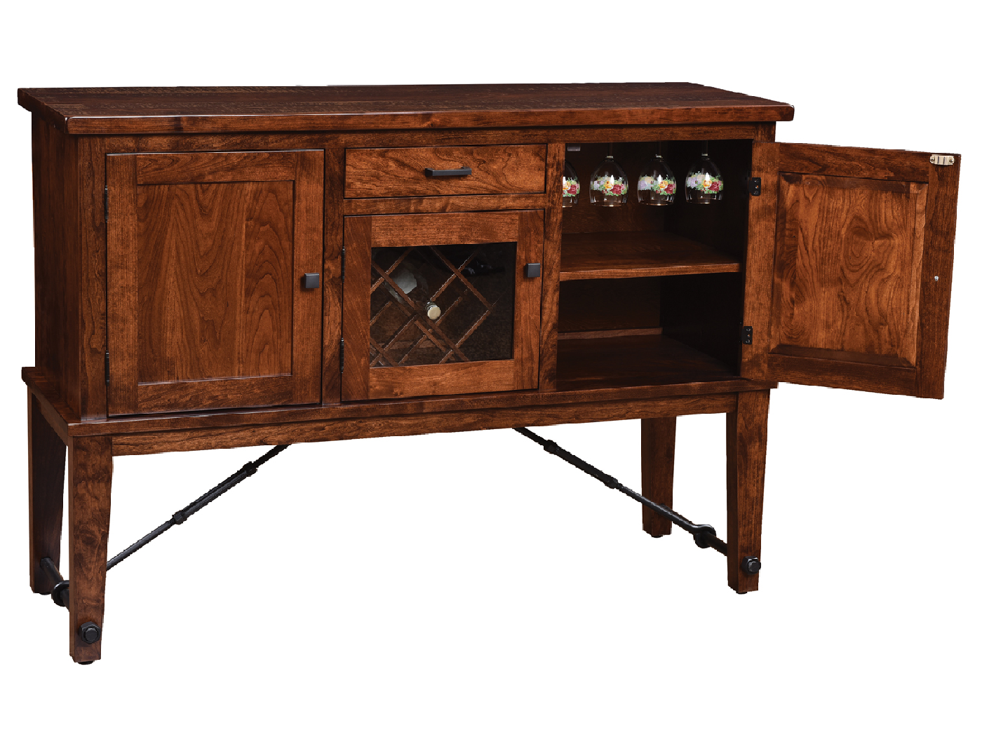 This Farm House buffet delivers a rustic beauty to your dining room or kitchen. Choose the wood species, stain color and hardware to truly make this one of a kind. Don’t need a space for wine or stemware add doors or drawers instead. It is all about choice.