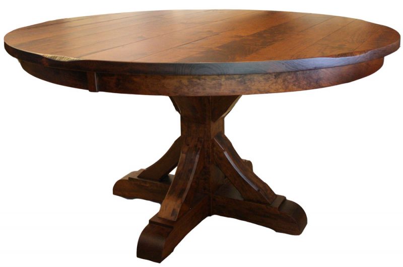 Amish crafted and finished, the Mission round table boasts a 1-1/4” planked top and stunning single pedestal. Customize this table with a number of combinations between the wood species, stain color, and size to make this your own.