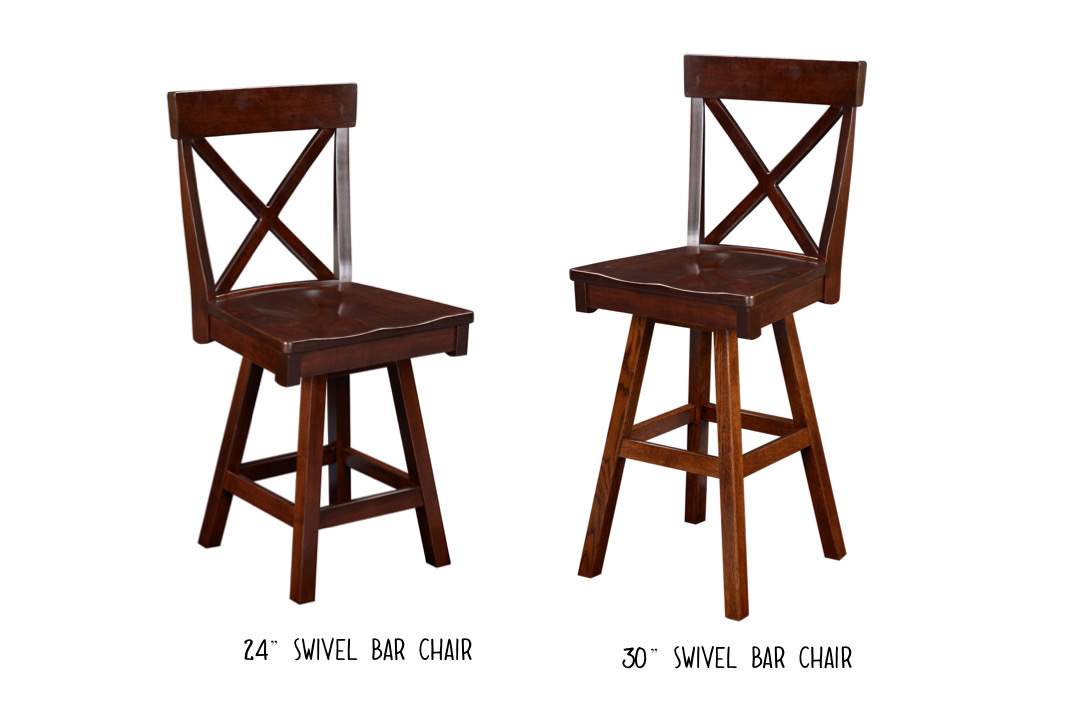 19.5″w x 16.5″d x 46.25″h: 30″ swivel bar chair