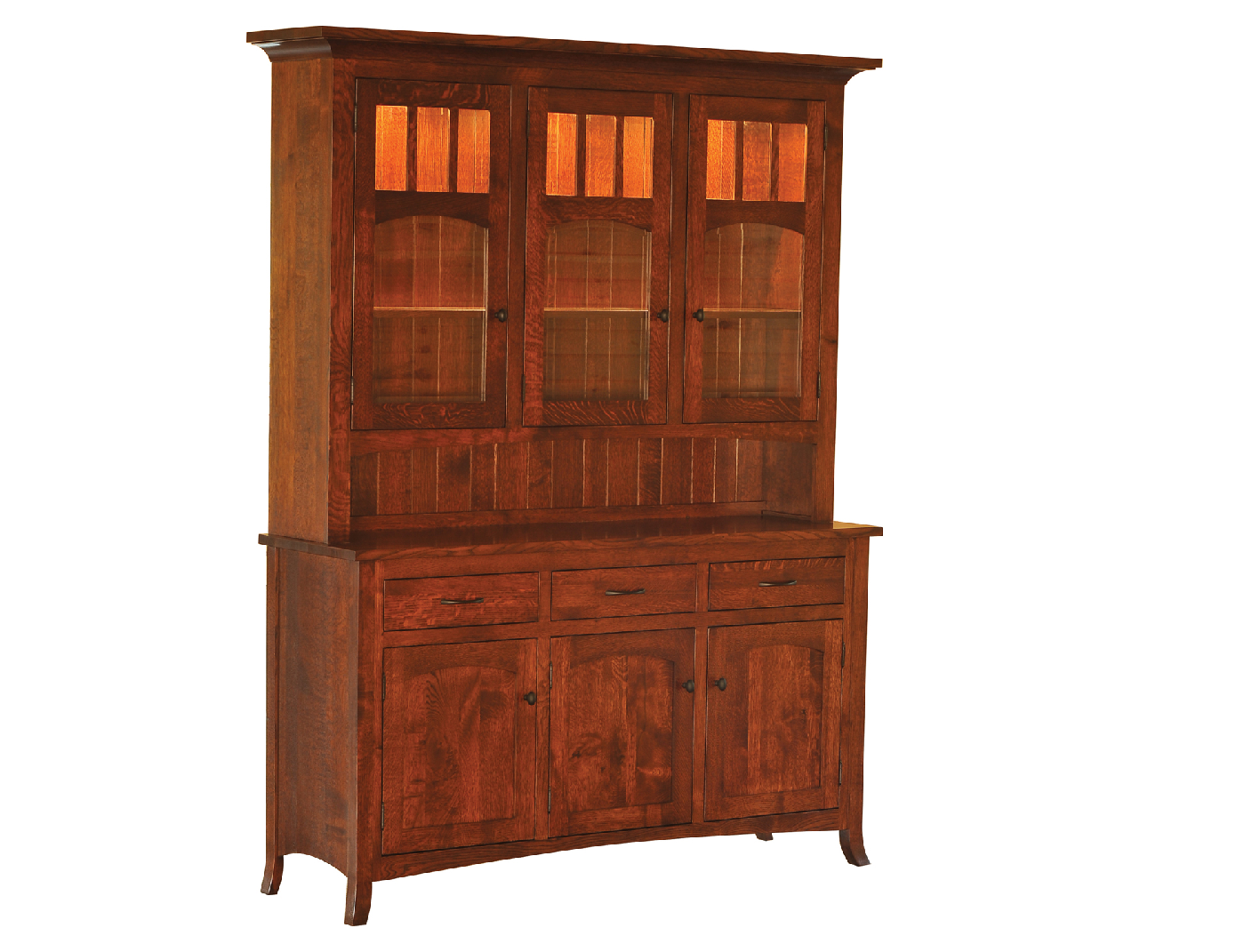 This three door hutch adds beauty and utility to your dining room. From dishes to glassware, everything you need for your next family celebration or dinner party can be beautifully organized in one place. Want to further showcase that organization, add glass sides to your hutch.