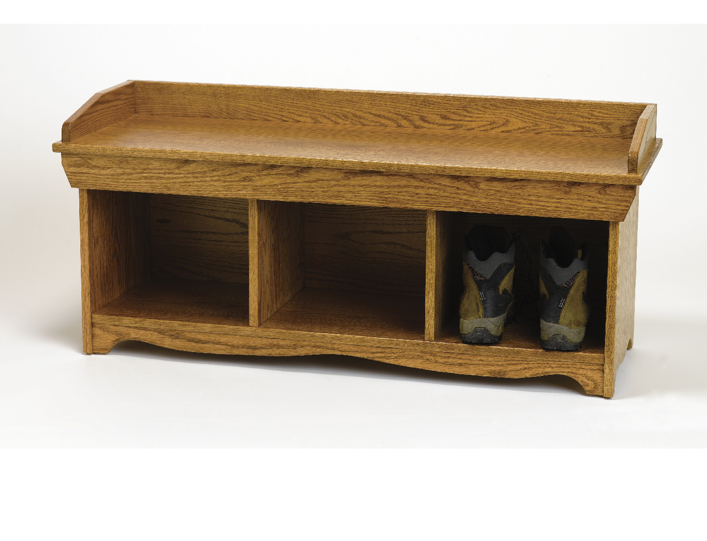 The 3 section shoe bench is the perfect addition to your foyer and/or mud room. With everything customizable from the wood species to the stain color, choose between a number of combinations to make this bench your own.