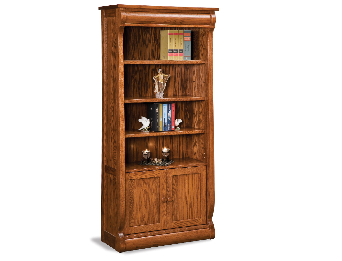 Complete your living space with this traditional sleigh bookcase. With everything customizable from the wood species to the stain color, customize any number of combinations to make this your own.