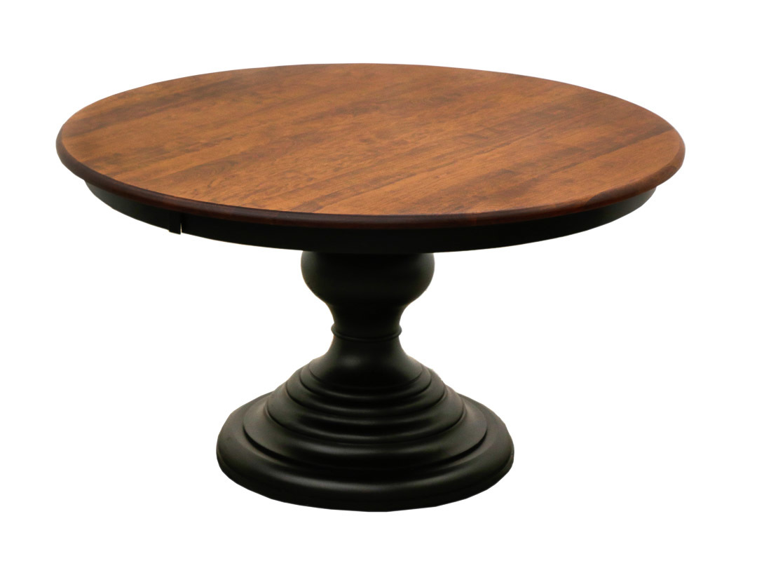 You’ll love the look and feel of this Traditional Single Pedestal Dining Table. The wooden build allows for an appearance that is rich with natural elegance and strength.  With everything customizable from the wood species to the stain color, choose between a vast number of combinations to make this set your own.